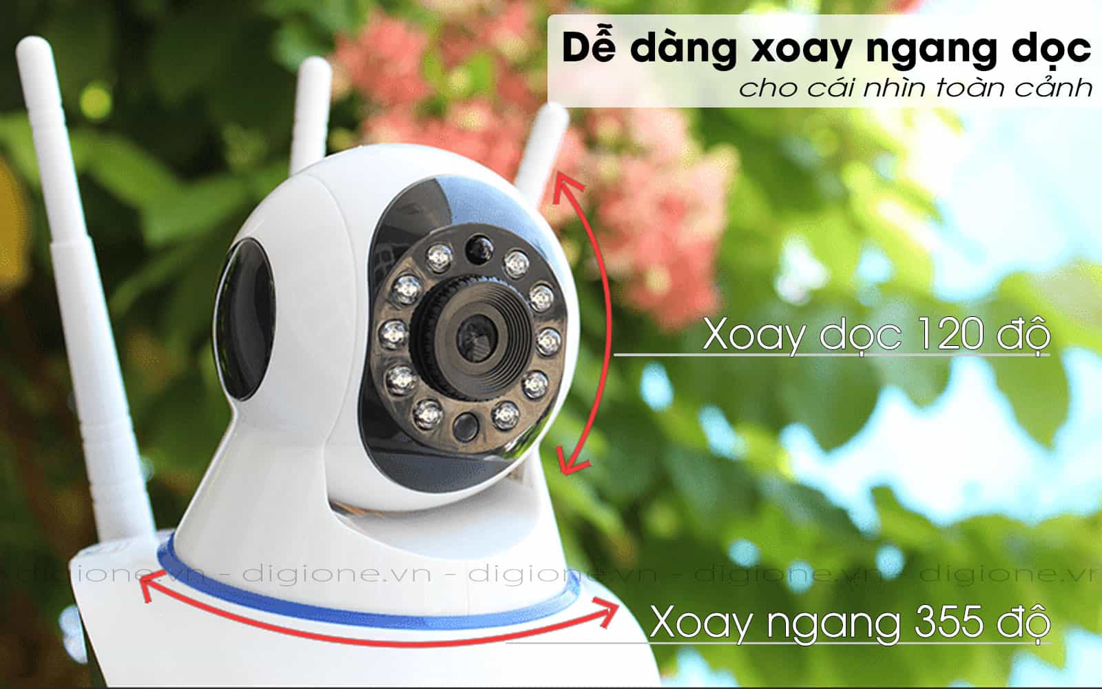 Bằng cơ chế xoay ngang 355°, dọc 120° khiến cho camera carecam có thể thay đổi góc nhìn một cách linh hoạt. Người dùng dễ dàng điều chỉnh góc nhìn của thiết bị thông qua ứng dụng được cài đặt sẵn trên điện thoại trên điện thoại.